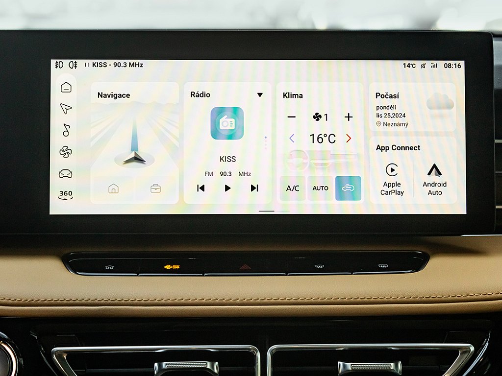 Upozornění na vozy přijíždějící z boku při couvání (RCTA), Upozornění na vozy přijíždějící zezadu při otevírání dveří, Systém udržování v jízdním pruhu (LKA), Upozornění na změnu jízdního pruhu (LCA), Tempomat, Inteligentní adaptivní tempomat s funkcí udržování v jízdním pruhu (ICA), Inteligentní asistent rychlosti (ISA), Automatické nouzové brzdění s detekcí chodců, cyklistů i motocyklů (AEB), Upozornění na únavu řidiče (UDW), Inteligentní asistent rychlosti (ISA), Varování před čelním nárazem (FCW), 8 reproduktorů, Audiosystém s 12,3" barevným dotykovým displejem (iSMART), Bez názvu, Zrcadlení smartphonu skrze Apple CarPlay®/Android Auto™, 4 USB porty (2 vpředu, 2 vzadu), Bluetooth® handsfree, Online služby (další služby zahrnují Počasí, Živý provoz, Youtube, Spotify, TikTok), Rádio AM/FM/DAB+, Čelní airbagy řidiče a spolujezdce (x2), spínač deaktivace airbagu spolujezdce, 3bodový bezpečnostní pás na zadních sedadlech (x3) s předpínačem a omezovačem zátěže (x2), Boční airbagy řidiče a spolujezdce (x2), hlavové (okenní) airbagy vpředu a vzadu (x2), Elektronický stabilizační systém (ESP), Systém detekce mrtvého úhlu (BSD), Antiblokovací brzdový systém (ABS), Asistent rozjezdu do kopce (HLA), Elektronický systém rozdělení brzdného účinku (EBD), Upozornění na nezapnuté bezpečnostní pásy, Výškově nastavitelné pásy vpředu, Systém ISOFIX na zadních sedadlech (2x), Systém monitorování tlaku v pneumatikách (TPMS), 3bodový bezpečnostní pás na předních sedadlech s předpínačem a omezovačem zátěže (x2), Sada pro nouzovou opravu pneumatik, Přední mlhové světlomety, 19" kola z lehkých slitin Diamond Blade, Funkce "follow me home", Stříbrné střešní ližiny, Zadní parkovací senzory, Přední parkovací senzory, LED světlomety, Elektricky ovládané páté dveře, LED denní světlomety, LED zadní světlomety, Elektricky nastavitelná, vyhřívaná a automaticky sklopná vnější zpětná zrcátka s pamětí, Automatické světlomety, Zatmavená zadní okna, Středová loketní opěrka vpředu s úložným prostorem, Bezklíčový přístup a startování pomocí tlačítka, Přední i zadní okna elektricky ovládaná, všechna s funkcí AUTO, Výškově a podélně nastavitelný volant, Osvětlení interiéru vpředu i vzadu, 12V zásuvka, 360° parkovací kamera, Speed Sensing Locking, 12,3" digitální přístrojový štít, Dešťový senzor, Elektrická parkovací brzda (EPB) s funkcí Auto Hold, Dvouzónová automatická klimatizace, Centrální zamykání dveří s dálkovým ovládáním, Sedadlo řidiče elektricky nastavitelné v 6 směrech s nastavením bederní opěrky a paměťovou funkcí, Zadní sedadlo sklopné, dělitelné v poměru 60:40, 3 opěrky hlavy na zadních sedadlech, Přední vyhřívaná sedadla, Bílá Pearl